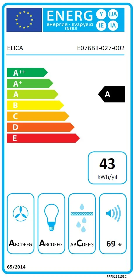 *** Lüftereffizienz, Beleuchtungseffizienz, Fettfiltereffizienz: auf einer Skala von A (höchste Effizienz) bis G (niedrigste Effizienz)